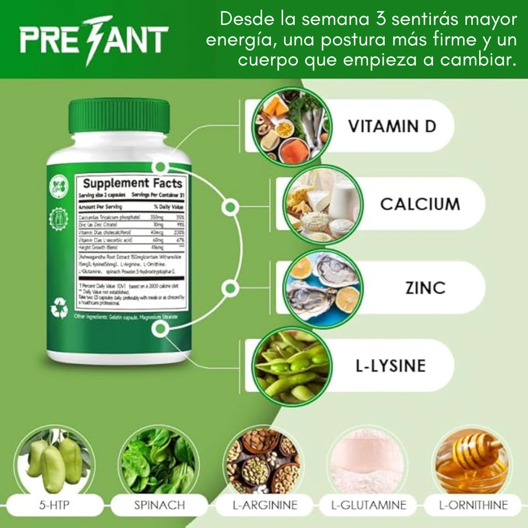 Con PRETANT Height Increase Maximizer, apoyas tu desarrollo óseo de forma saludable, sin riesgos y con ingredientes seleccionados por su eficacia.